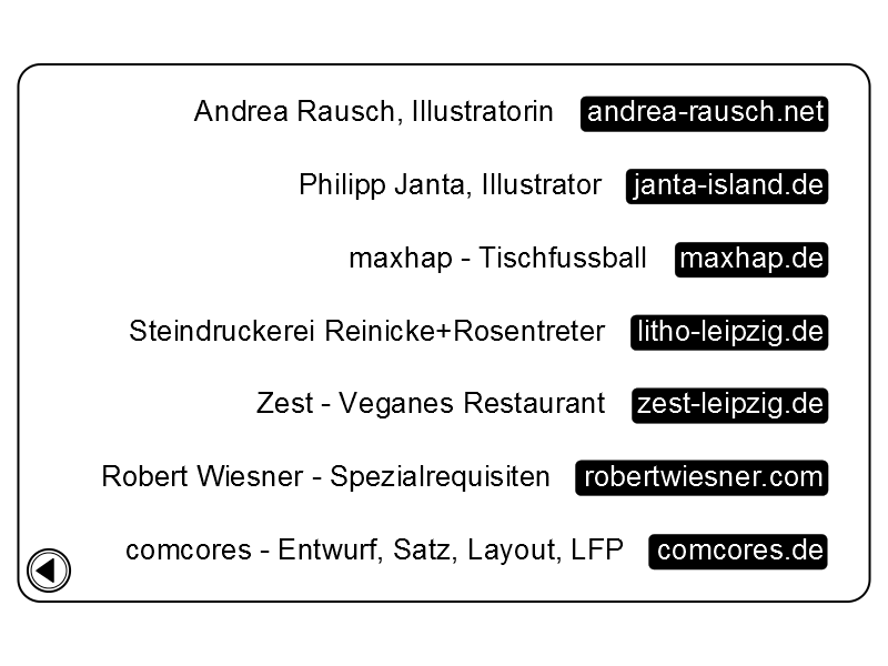 inhalt link:andrea-rausch.net link:janta-island.de link:maxhap.de link:litho-leipzig.de link:zest-leipzig link:robertwiesner.com link:comcores.de